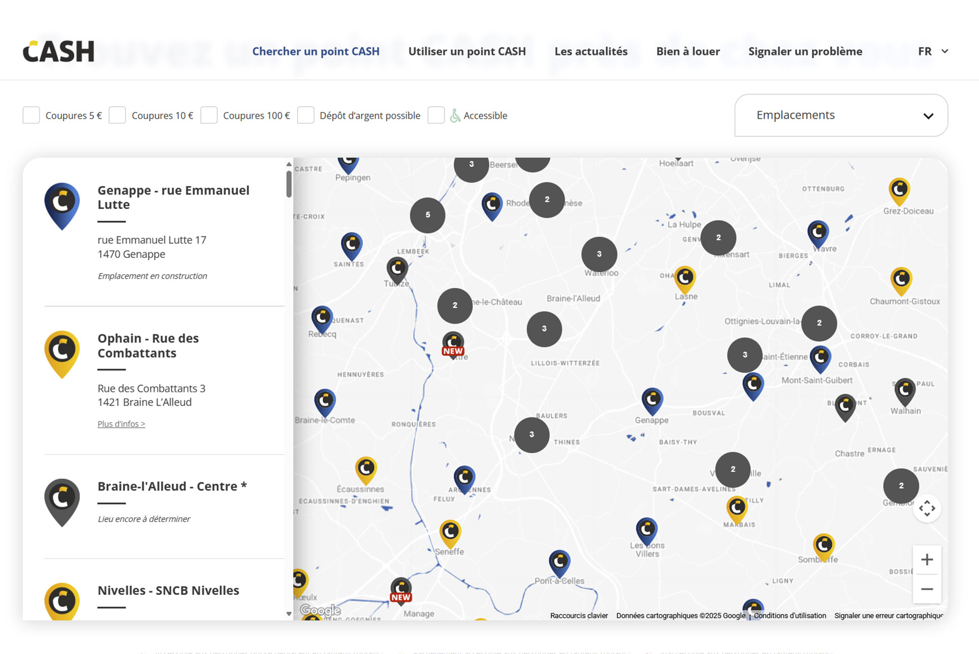 Batopin, qui regroupe les quatre principales banques du pays (BNP Paribas Fortis, ING, KBC-CBC et Belfius), vise à garantir un accès à un point Cash dans un rayon de 5 kilomètres pour 95 % de la population. À Genappe, cet engagement est loin d’être respecté. La commune, la plus vaste du Brabant wallon, se retrouve avec une couverture bancaire largement insuffisante, à la suite des fermetures successives annoncées des distributeurs existants (CBC, BNP Paribas Fortis, et bientôt Belfius).
